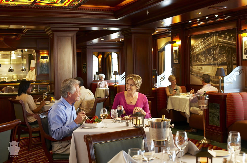 Stravování ve speciálních restauracích a zařízeních je za příplatek: například steakhouse Crown Grill, italská trattorie Sabatini’s, gourmetské restaurace The Chef’s Table nebo Chef’s Table Lumiere, italská zmrzlina Gelato aj.