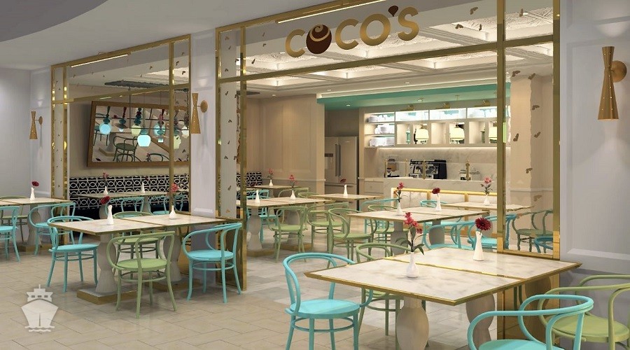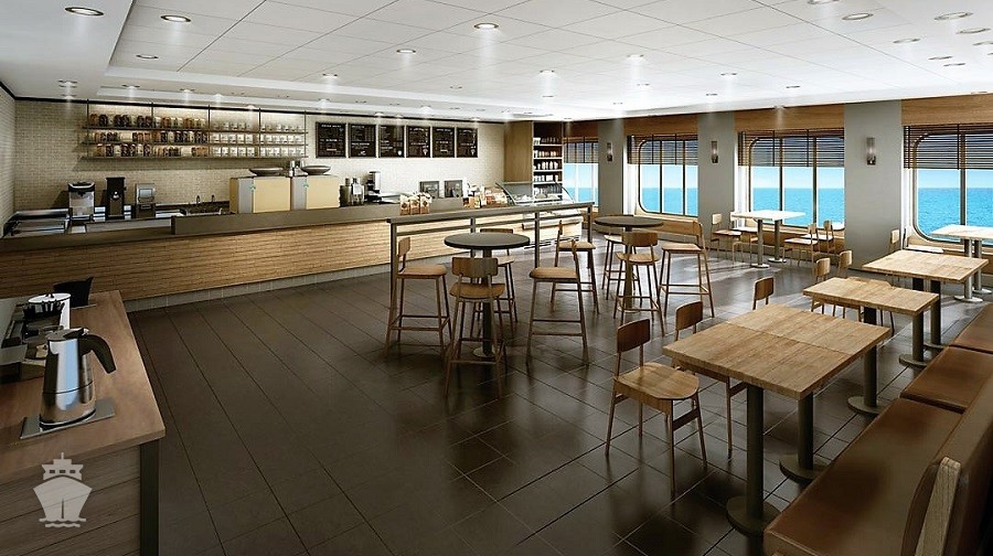 - Atrium Café & Bar – centrální kavárna a bar v atriu lodi