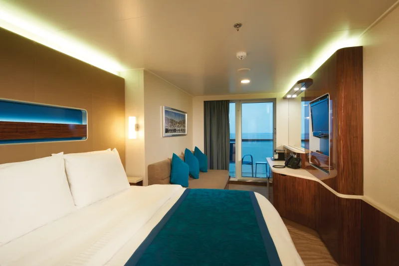 koupelna se sprchou a WC, 2 lůžka, v některých kajutách možnost přistýlek, toaletní stolek, úložné prostory, interaktivní TV, sejf, telefon, vysoušeč vlasů.