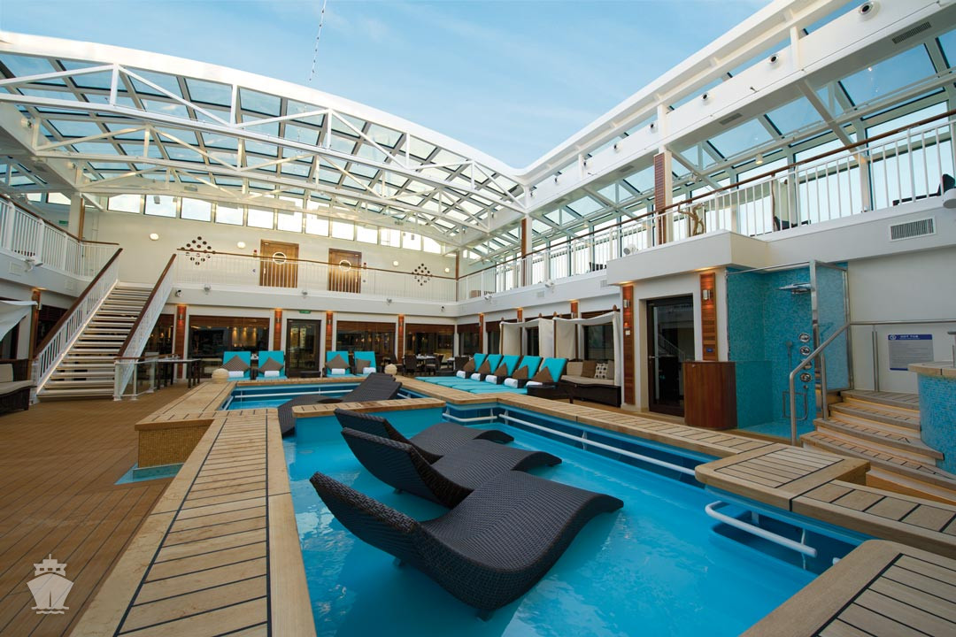 - Spinnaker Lounge – stylový salonek v přídi s panoramatickým výhledem