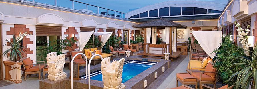 Suite: luxusní varianta ubytování na nejlepších místech na lodi, prostorné a luxusně vybavené; více variant včetně suite v privátní zóně The Haven
