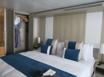 Základní vybavení všech kajut: koupelna s WC, fén, toaletní potřeby; lůžka, dostatek úložných prostor, toaletka se zrcadlem, individuálně nastavitelná klimatizace, TV, župany, trezor, minibar.