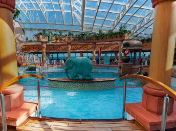 V ceně plavby je nadstandardní plná penze v hlavní restauraci - Main Dining Room, velkolepé bufety ve Windjammer Marketplace, občerstvení v Park Café, pizza a některé nápoje (voda, limonáda, ledový čaj z automatů v bufetových restauracích).