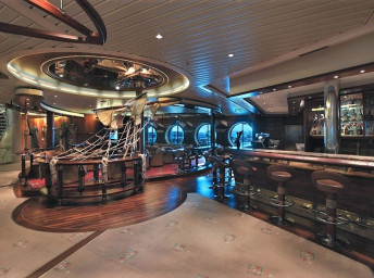 - "Peek-a-boo bridge" výhled na kapitánský můstek, kde máte jedinečnou příležitost nakouknout přes rameno kapitánovi a posádce při řízení lodi (celkem na přídi, 11. paluba)