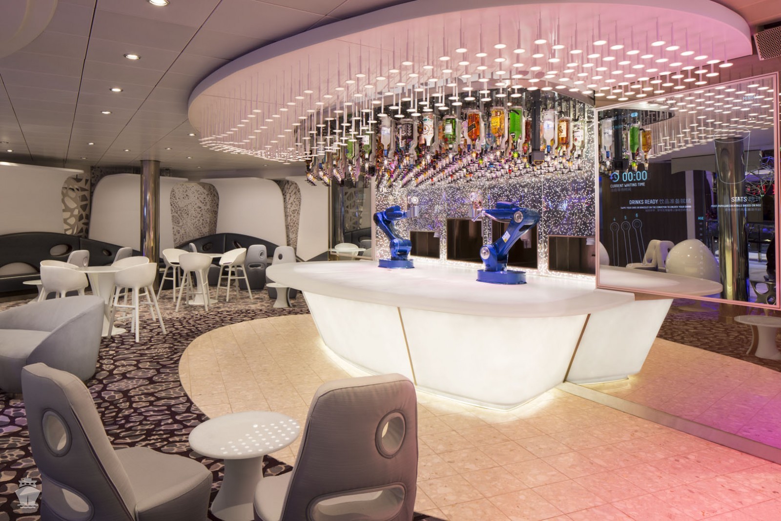 - Bionický bar na Royal Promenade - Robotické ramena připravující koktejly na přání.* Nápoje jsou zpoplatněny