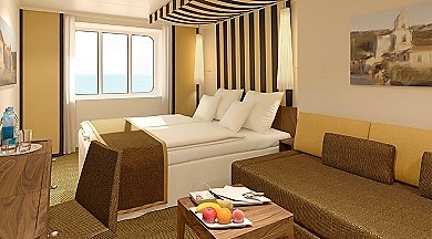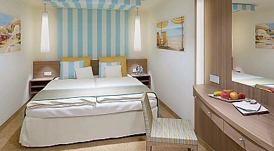 Ve všech kajutách se nachází regulovatelná klimatizace, safe, koupelna se sprchou, vysoušeč vlasů, telefon, Tv s plochou obrazovkou.
