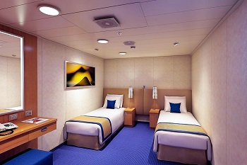 Vybavení ve všech kajutách: koupelna se sprchou, postele a dostatek úložných prostor, TV, telefon, fén, sejf, minibar, individuálně nastavitelná klimatizace, plážové osušky k použití během plavby.