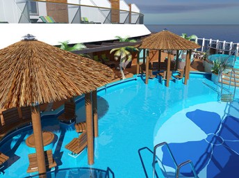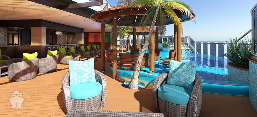 - Seaside Theater s 25m² LED obrazovkou pro ty, kteří chtějí sledovat filmy přímo z bazénu