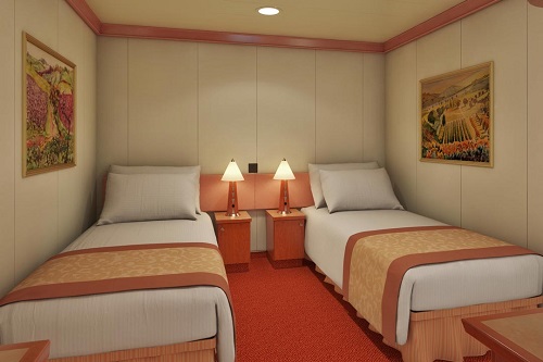 Základní vybavení všech kabin: koupelna se sprchou a WC, TV s plochou obrazovkou, telefon, elektrická zásuvka 110 AC, regulovatelná klimatizace, postele Carnival Comfort, vysoušeč vlasů, bezpečnostní schránka, mini lednička