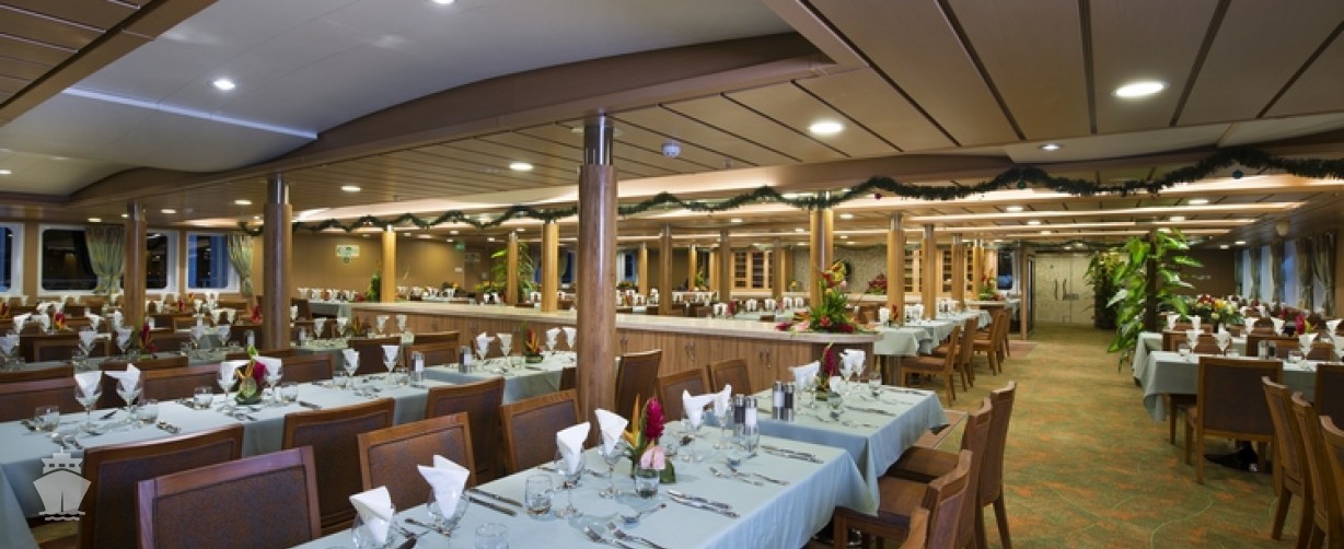 Loď je navržena podle principů feng-šuej (majiteli lodní společnosti jsou i dnes čínští Tahiťané). Má 108 útulných a vkusných kajut. Od prezidentského apartmánu až po kajuty sdílené osmi osobami umožňuje ubytování hostům s opravdu různým finančním rozpočtem. Můžete si vybrat z osmi kategorií ubytování: Class C (4-lůžkové vnitřní nebo až 8-lůžkové s oblou), vnější kajuty Stateroom (2- až 4-lůžkové s okénkem), Deluxe (pro 2 osoby s balkonem), Superior Deluxe (větší verze Deluxe), až po apartmány: Junior, Premium, Royal aa Presidential.