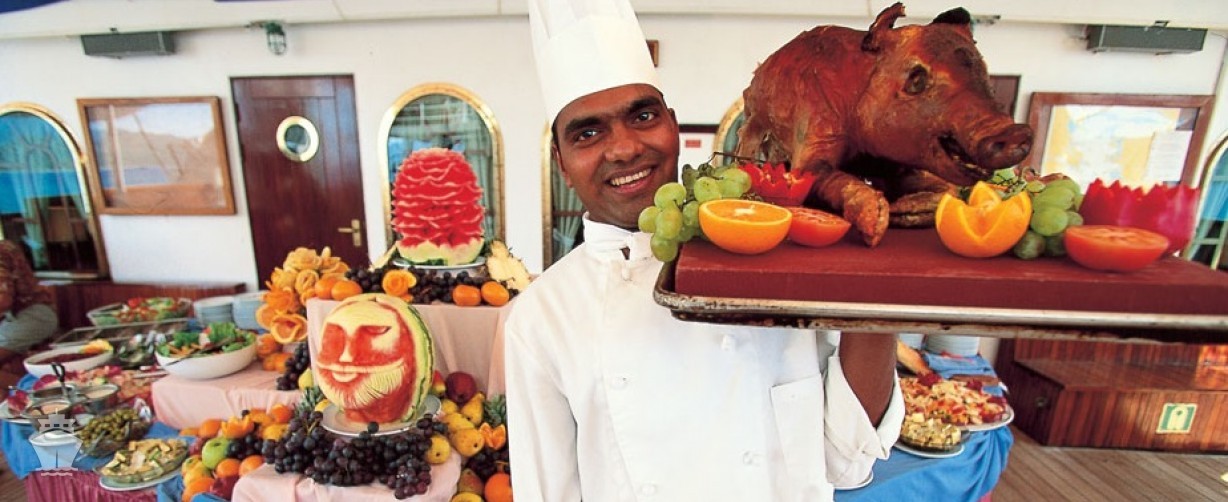 Stravování: Obědy jsou servírované formou bufetu s výběrem z grilovaných specialit, mořských plodů a ryb, čerstvého ovoce a salátů. Často se uskutečňují přímo na pobřeží navštívených ostrovů. Večeře á la carte jsou v poněkud formálnějším duchu, v prostorách elegantní lodní restaurace. Nejsou potřeba žádné rezervace a výběr sezení je zcela volný.