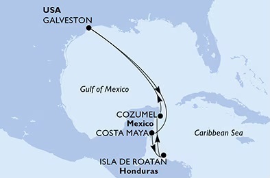 Týdenní plavby zavedou své hosty na krásná místa západního Karibiku. Na trase se objeví třeba Costa Maya, mexický Cozumel a honduraský přístav Roatan.