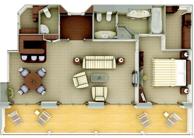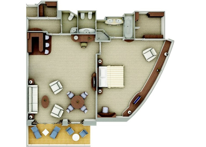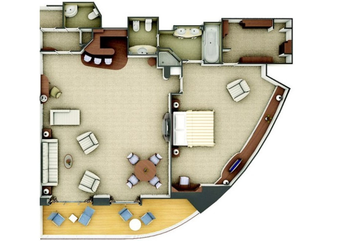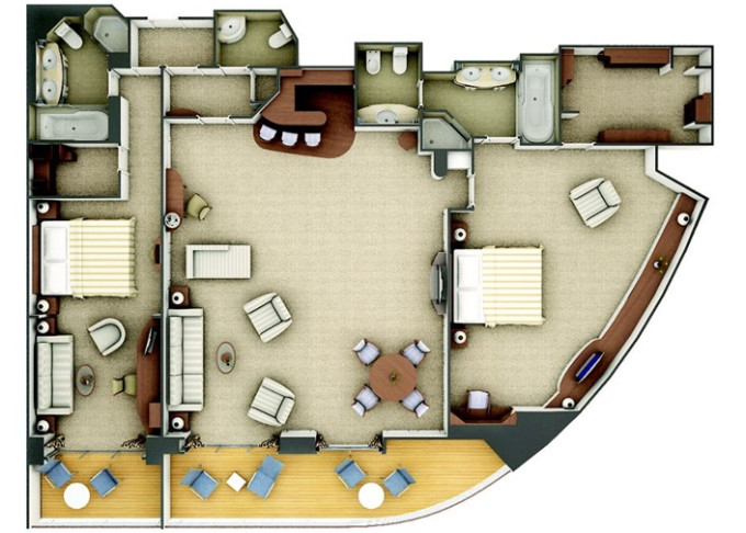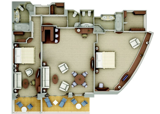 | R2 - Royal Suite 2 122-126 m² (včetně balkona). Royal Suite R1 spojená s Veranda Suite. | 1 423 698 Kč 1 423 698 Kč za osobu |
