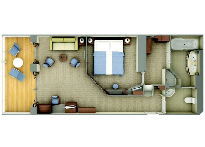 | SV - Superior Veranda Suite 32m² (včetně balkona). Ložnice s oddělitelnou obývací částí. | 541 406 Kč 270 703 Kč za osobu | ||