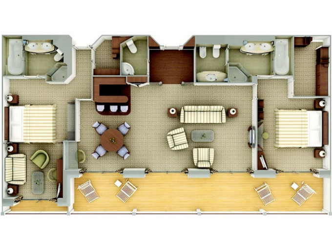 | SL - Silver Suite 61-65 m² (včetně balkona). Obývacia a jídelní část, oddělená ložnice. | 1 233 203 Kč 411 068 Kč za osobu |