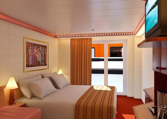 | 4K - Vnitřní kajuta s francouzským balkonem 17 m². Francouzský balkon s omezeným výhledem. | 58 402 Kč 29 201 Kč za osobu |