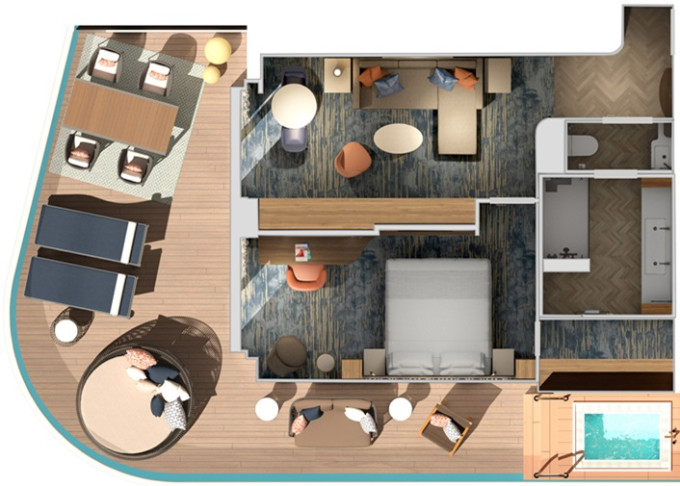 | HE - Kajuta Havana Cabana s patiom 26 m² / vnější patio 8 m². Tropický styl, vstup do exkluzivní zóny Havana. | 55 995 Kč 27 998 Kč za osobu | ||