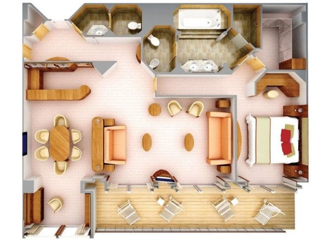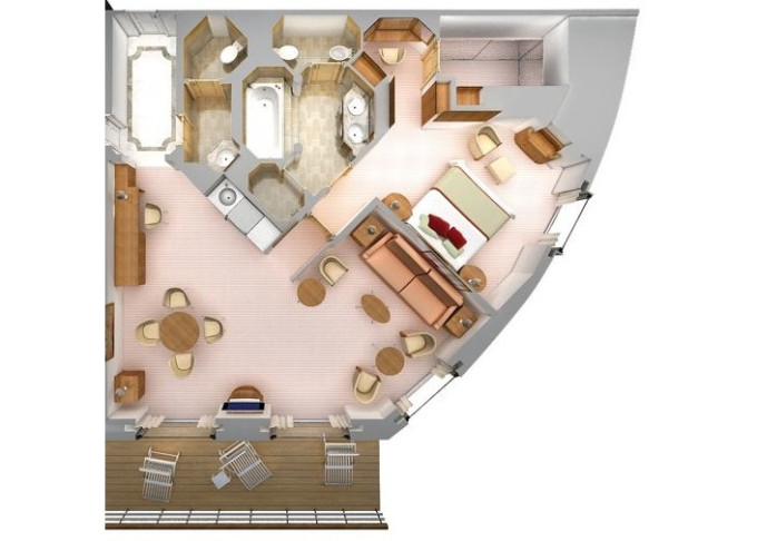 | SV - Superior Veranda Suite 29 m² + balkon 6 m². Ložnice s oddělitelnou obývací částí. Horní paluby. | 315 820 Kč 315 820 Kč za osobu | ||