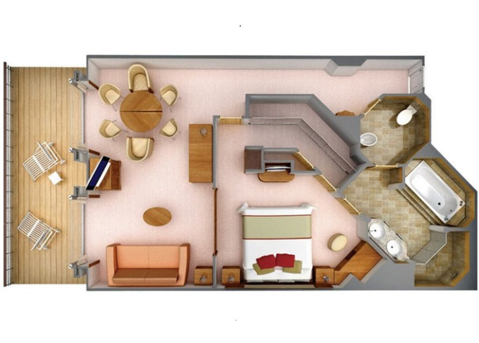 | DX - Deluxe Veranda Suite 29 m² + balkon 6m². Ložnice s oddělitelnou obývací částí. Centrální umístění na palube. | 330 859 Kč 165 430 Kč za osobu | ||