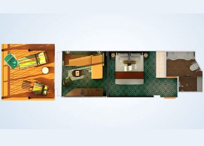 | HE - Kajuta Havana Cabana s patiom 17 m² / vnější patio 9 m². Tropický styl, vstup do exkluzivní zóny Havana. | 71 586 Kč 35 793 Kč za osobu |