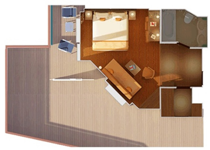 | 6T - Vnější kajuta Cloud 9 Spa / omezený výhled 20 m². Neotevíratelné okno / omezený výhled. Volný vstup do Cloud 9 Spa a balíček Cloud 9 Spa. | 42 310 Kč 21 155 Kč za osobu |