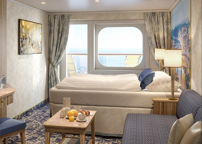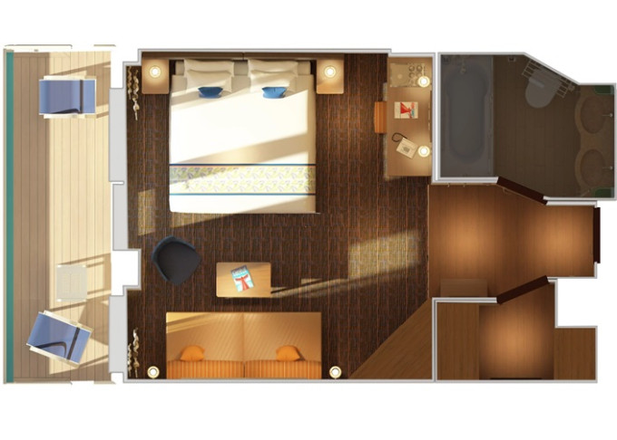 | OS - Ocean Suite 100 - 108 m² (kajuta a balkón). 2 koupelny, vířivka, šatník. Služby Suite. | 70 734 Kč 35 367 Kč za osobu |