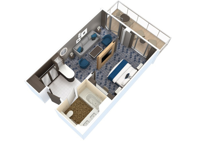 | J3 - Junior Suite s balkonem 27 m² / balkon 7 m². Výhody Royal Suite Class. 6/7/8/11/12/14. paluba. Max 5 osob. | 129 662 Kč 129 662 Kč za osobu | ||