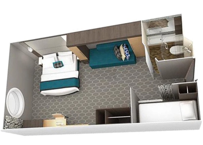 | 2T - Vnitřní kajuta Promenade View / s oknem 18 m². Neotevíratelné okno (výhled na Promenade). 7/11/12. paluba. Max 5 osob. | 90 736 Kč 22 684 Kč za osobu | ||