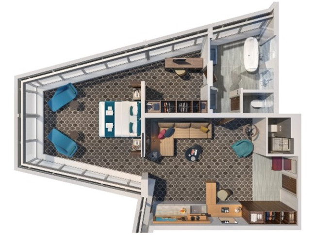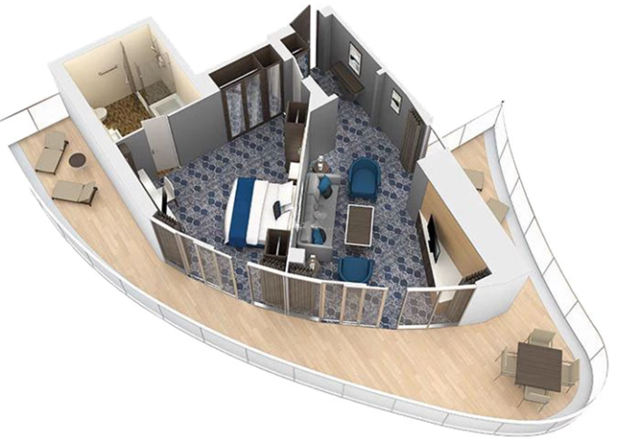 | UP - Ultimate Panoramic Suite 85 m². Velké panoramatické okna. Výhody Royal Suite Class. 14. paluba. Max 4 osoby. | 403 197 Kč 201 599 Kč za osobu | ||