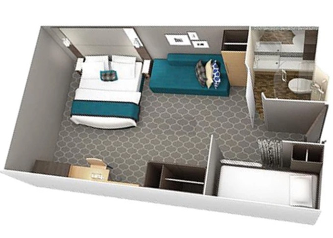 | 2T - Vnitřní kajuta Promenade View / s oknem 18 m². Neotevíratelné okno (výhled na Promenade). 7/11/12. paluba. Max 5 osob. | 72 563 Kč 24 188 Kč za osobu | ||