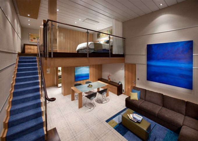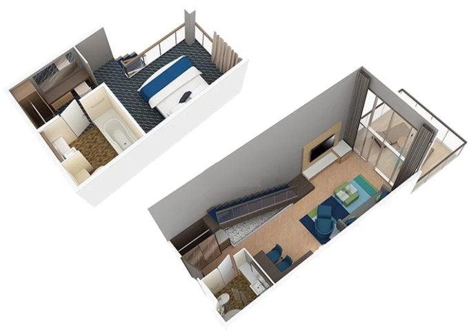 | L1 - Crown Loft Suite s balkonem 50 m² / balkon 10 m². 2-podlažní apartmán. Výhody Royal Suite Class. 17. paluba. Max 4 osoby. | 166 558 Kč 166 558 Kč za osobu | ||