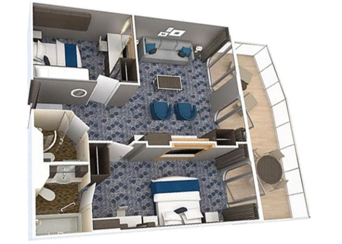 | A2 - AquaTheatre Suite s balkonem / 2 ložnice 62,5 m² / balkon 56 m². Výhody Royal Suite Class. 9/10. paluba. Max 8 osob. | 461 148 Kč 230 574 Kč za osobu |