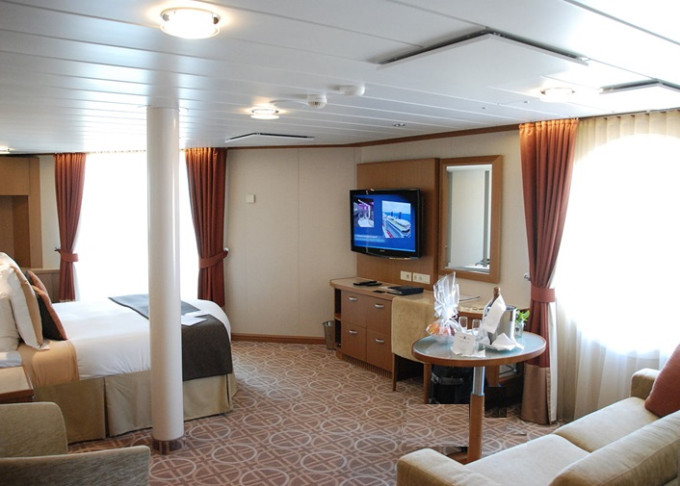 Základní vybavení všech kajut: koupelna s WC, fén, toaletní potřeby; lůžka, dostatek úložných prostor, toaletka se zrcadlem, individuálně nastavitelná klimatizace, ​​TV, župany, trezor, minibar.