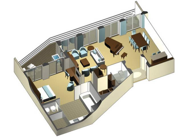 RS - Royal Suite 55 m² + balkon s vířivkou 15 m². 10/11. paluba. Max 4 osoby. Výhody Suite. 514 561 Kč 171 520 Kč za osobu