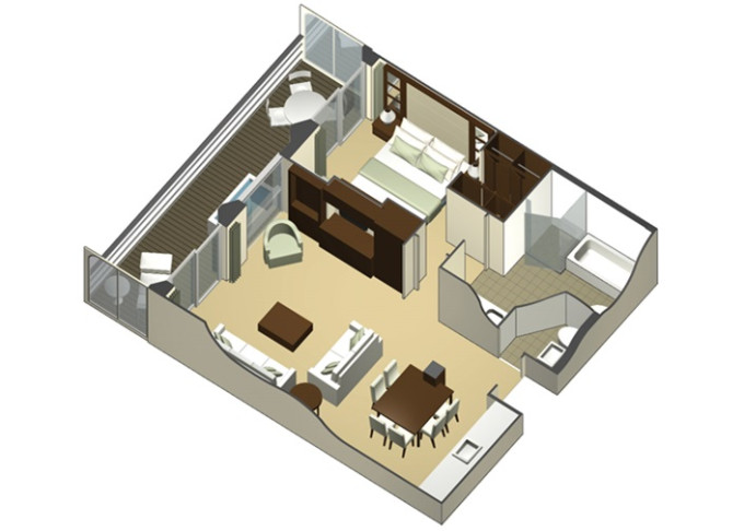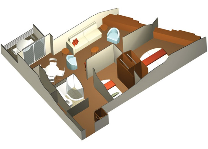 S1 - Sky Suite 28 m² + balkon 7 m². 6. až 12. paluba. Max 4 osoby. Výhody Suite. 280 027 Kč 93 342 Kč za osobu