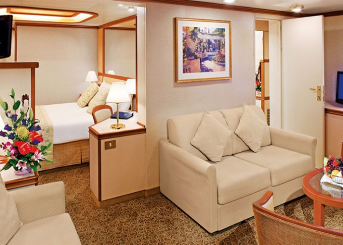 Stravování ve speciálních restauracích a zařízeních je za příplatek: například steakhouse Crown Grill, italská trattorie Sabatini’s, gourmetské restaurace The Chef’s Table nebo Chef’s