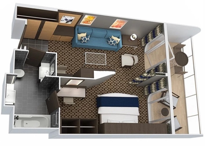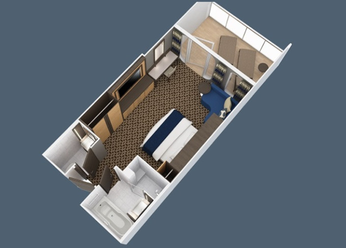 | 2U - Vnitřní kajuta s virtuálním balkonem 17 m². Obrazovka velkosti balkonových dverí s promítaným výhledem. 9/10. paluba. Max 2 osoby. | 70 132 Kč 35 066 Kč za osobu |