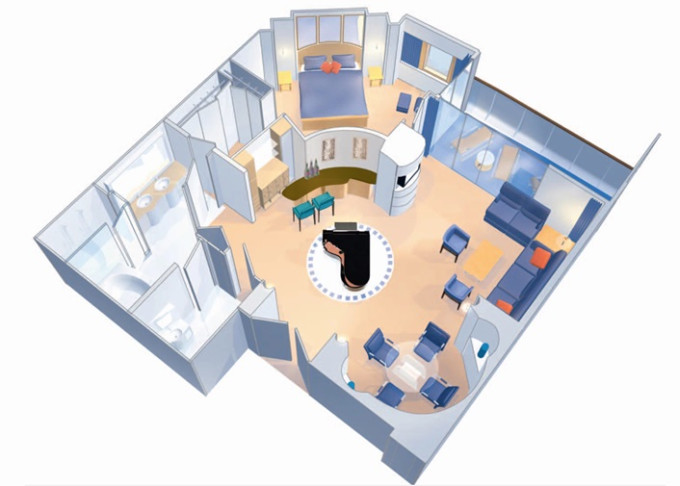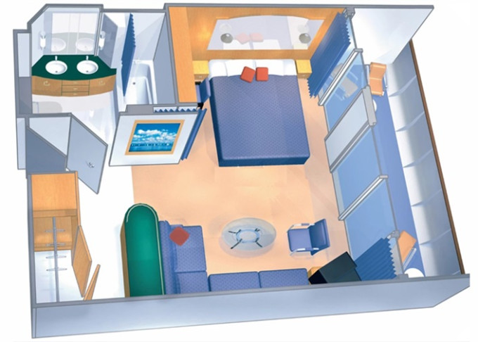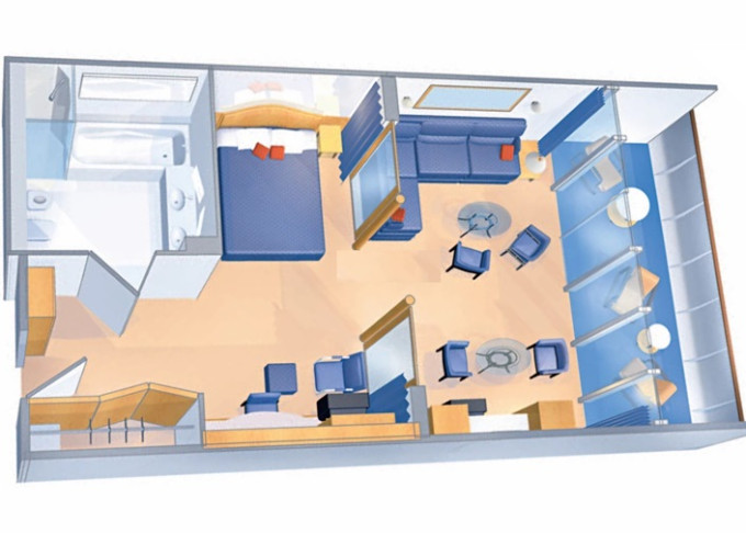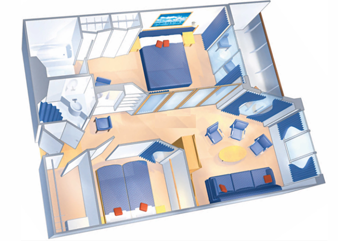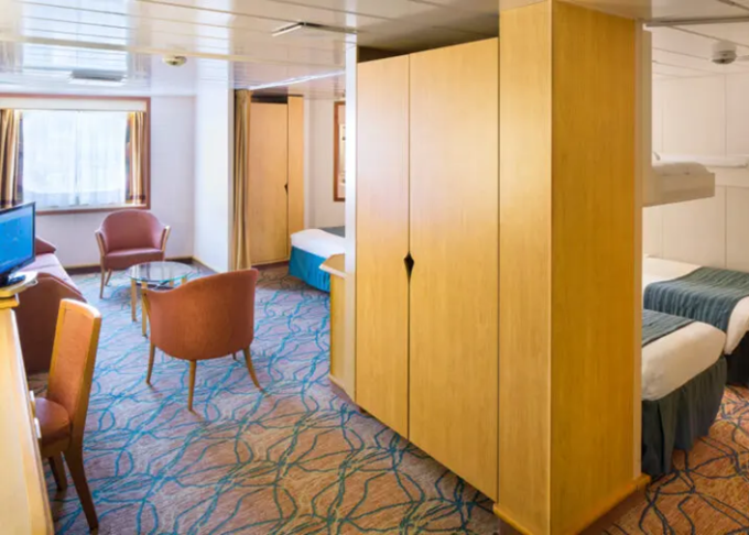 | VO - Ocean View Suite (bez balkonu) 44 m². Panoramatické neotevíratelné okna. Výhody Royal Suite Class. 8. paluba. Max 6 osob. | 144 475 Kč 72 238 Kč za osobu |