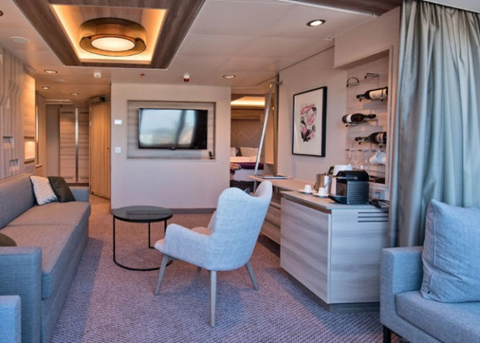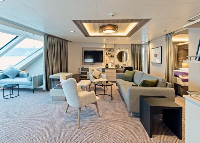 | MF - Corner Expedition Suite 22 m². Panoramatické neotevíratelné okno, TV, minibar, župan, kávovar, varná konvice, káva/čaj. | 799 126 Kč 399 563 Kč za osobu |