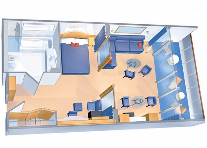 | OS - Owner’s Suite s balkonem 48 m² / balkon 11 m². Výhody Royal Suite Class. 8. paluba. Max 4 osoby. | 103 920 Kč 51 960 Kč za osobu | ||