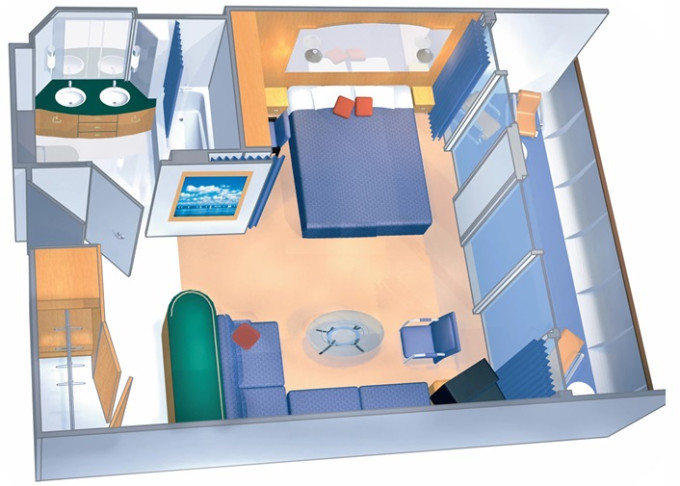 | 1K - Velká vnější kajuta Ultra Spacious 56 m². Neotevíratelné okno. 8. paluba. Max 8 osob. | 57 399 Kč 57 399 Kč za osobu |