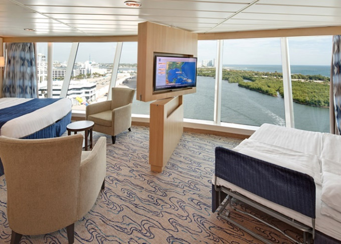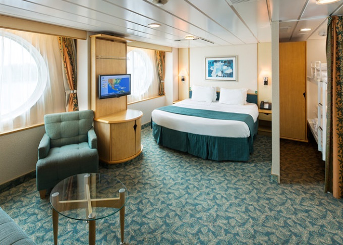 | VP - Ocean View Panoramic Suite (bez balkonu) 38 m². Panoramatické neotevíratelné okna. Výhody Royal Suite Class. 12. paluba. Max 6 osob. | 125 225 Kč 125 225 Kč za osobu | ||