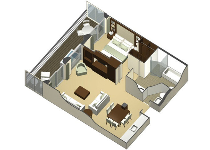 | SS - Sky Suite Sunset 28 m² / balkon 7 m². 6. až 12. paluba na zádi. Max 4 osoby. Výhody Suite. | 159 113 Kč 53 038 Kč za osobu | ||