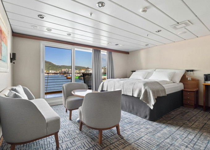 | QJ - Vnější kajuta Arctic Superior 16 - 17 m². Neotevíratelné okno s omezeným výhledem. Oddělené postele, obývací část. Tv, varná konvice, minibar. Max 2 osoby. | 268 347 Kč 134 173 Kč za osobu | ||
