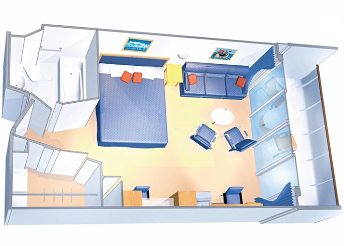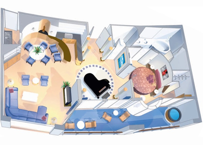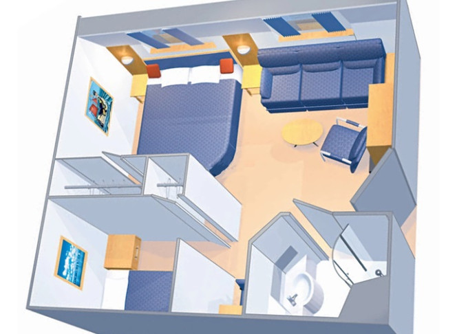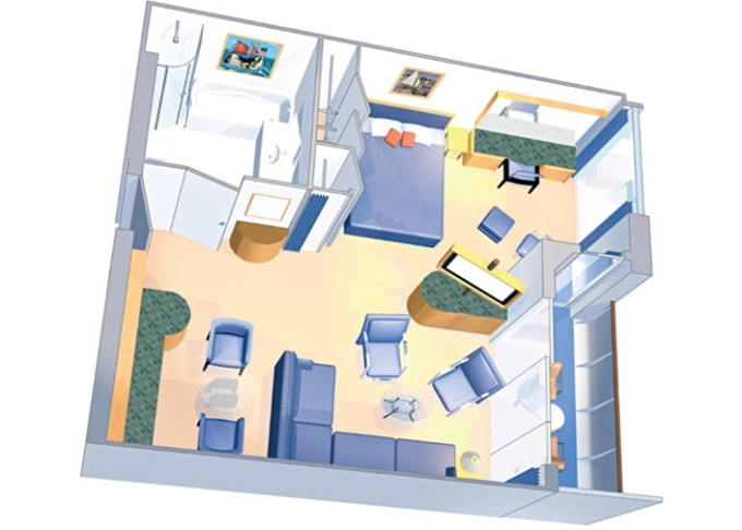| VP - Ocean View Panoramic Suite (bez balkonu) 37,5 m². Celoplošné neotevíratelné okna. Výhody Royal Suite Class. Výhody Royal Suite Class. 12. paluba. Max 6 osob. | 136 881 Kč 136 881 Kč za osobu |