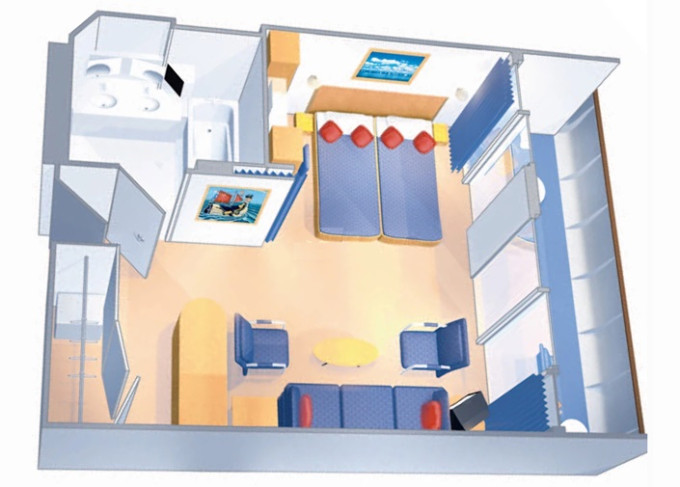 | 2T - Vnitřní kajuta Promenade View / s oknem 15 m². Neotevíratelné okno (výhled na Promenade). 6/7/8. paluba. Max 2 osoby. | 95 949 Kč 31 983 Kč za osobu | ||