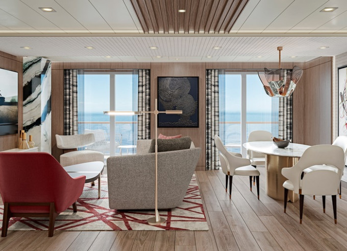 - Owner's Suites: soukromý oběd v apartmánu od 12:00 do 14:00 (volitelné) v den nalodění