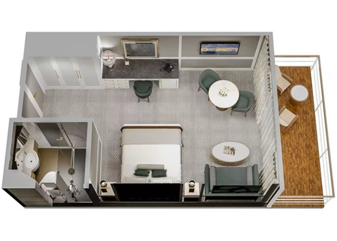 | PH2 - Penthouse Suite 24 m² + balkon 6 m². Výhody Penthouse Suite. 8. paluba. Max 2-3 osoby. Ložnice s obývací částí, koupelna se sprchovým koutem. | 309 253 Kč 154 627 Kč za osobu |