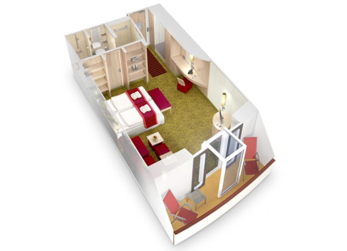 | BA - Kajuta s balkonem PREMIUM od 17,5 m² / balkon od 3 m². Cenový model Premium. Max 4 osoby. | 150 140 Kč 75 070 Kč za osobu | ||