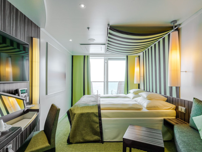 Ve všech kajutách se nachází regulovatelná klimatizace, safe, koupelna se sprchou, vysoušeč vlasů, telefon, Tv s plochou obrazovkou.
